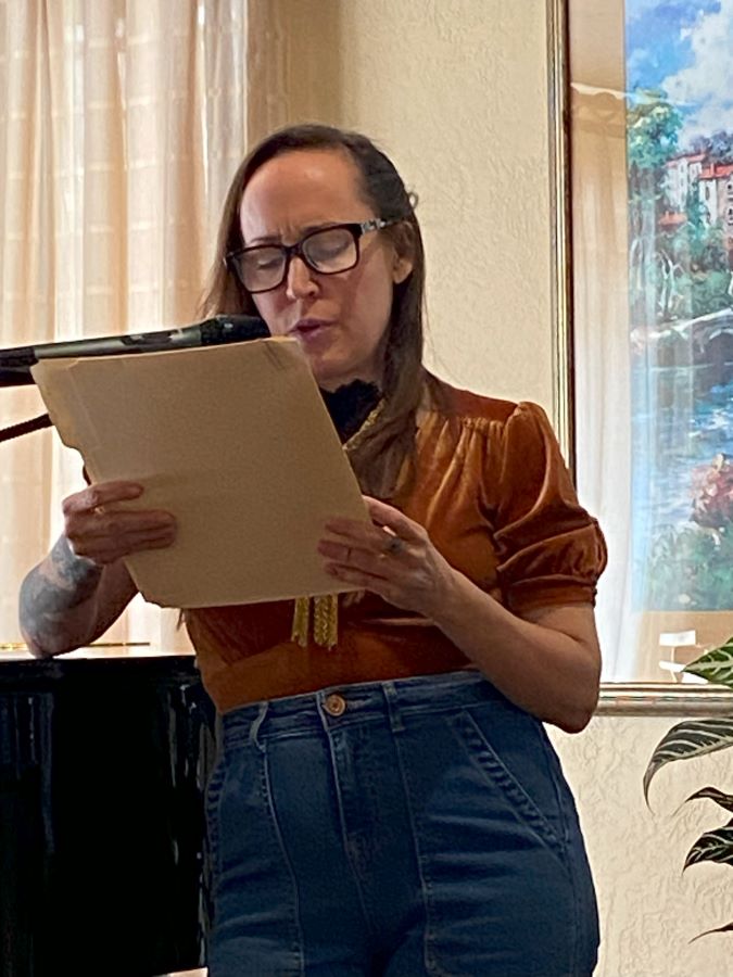 Guest readers were: Monterey Buchanan – “Sympathy for Clumsy Girls” Solae Duran – a 7-year-old who presented her original story, performing with tiny figures. Sara Frances – author of Unplugged Voices and Fragments of Spirit. Vicki Rottman – One Step at a Time: Lessons for Living (inspired by her sculptures). The Coffee Break Book: Brief Diversions for Your Busy Day.